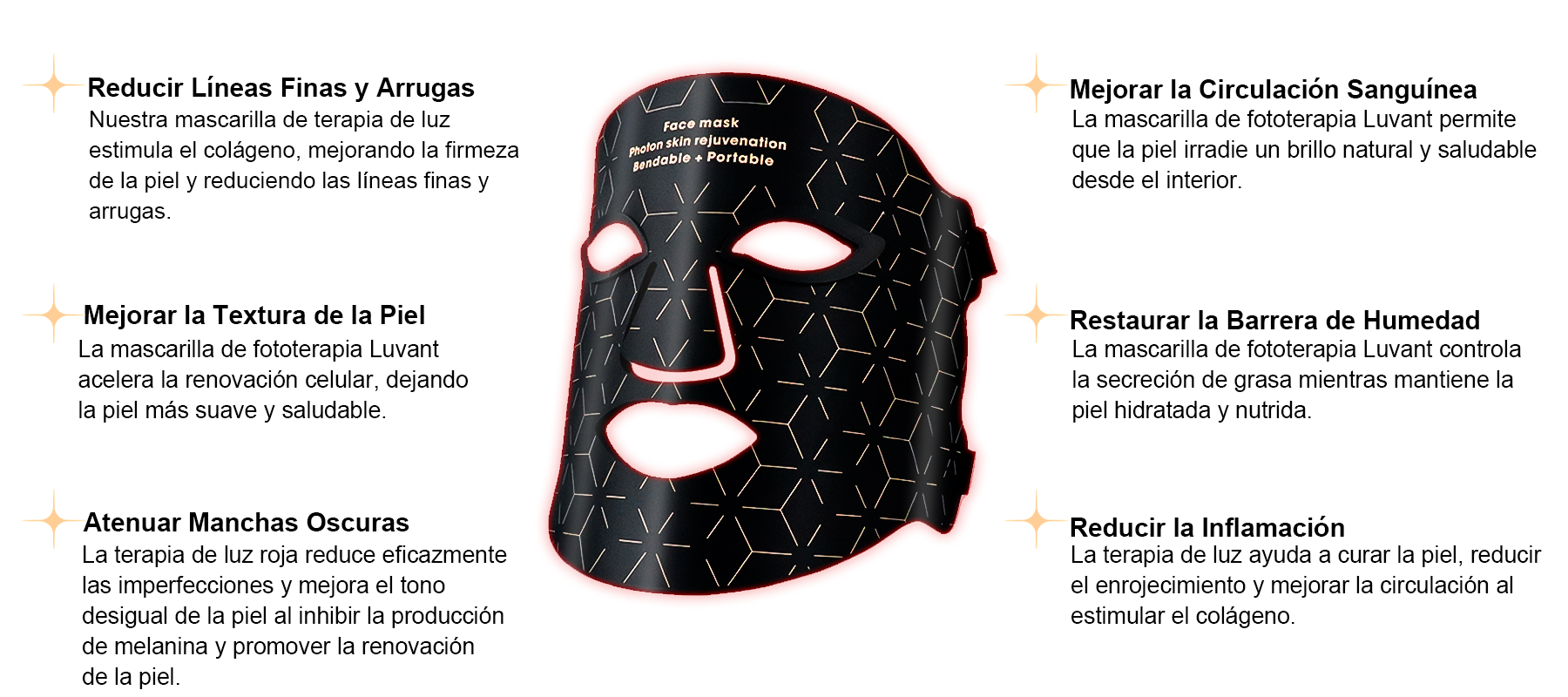 Por eso, todas las características de la máscara LED Luvant, desde su diseño inteligente y manos libres hasta su fototerapia específica y su cómodo ajuste de silicona, están pensadas especialmente para ti. No es solo una herramienta de belleza, es tu «restaurador de brillo» personal, que te ayuda a transformar tu piel sin esfuerzo y a recuperar tu luminosidad. Elige la máscara LED Luvant para disfrutar sin esfuerzo de cada momento de cuidado personal.